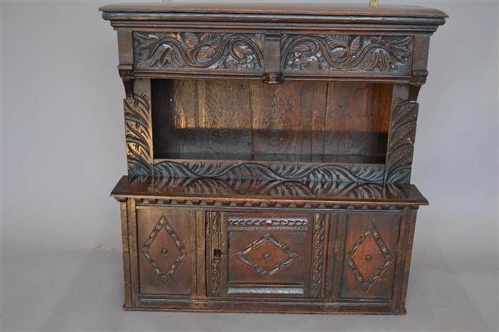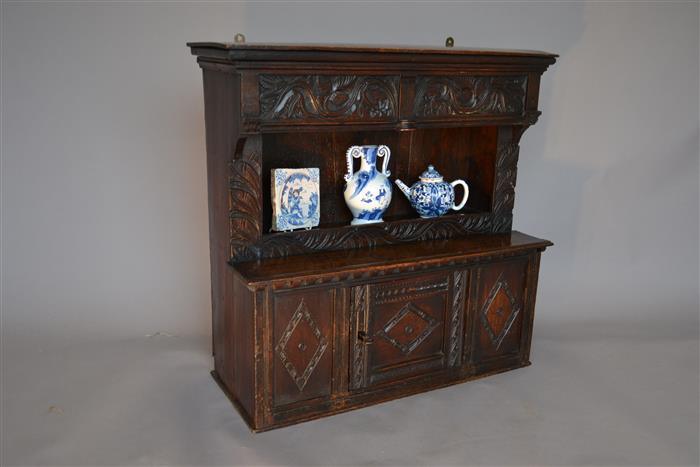 A RARE CHARLES I OAK MURAL CUPBOARD.