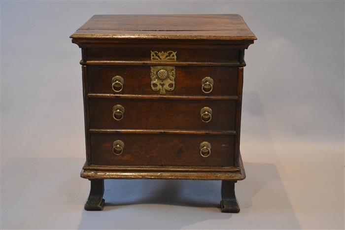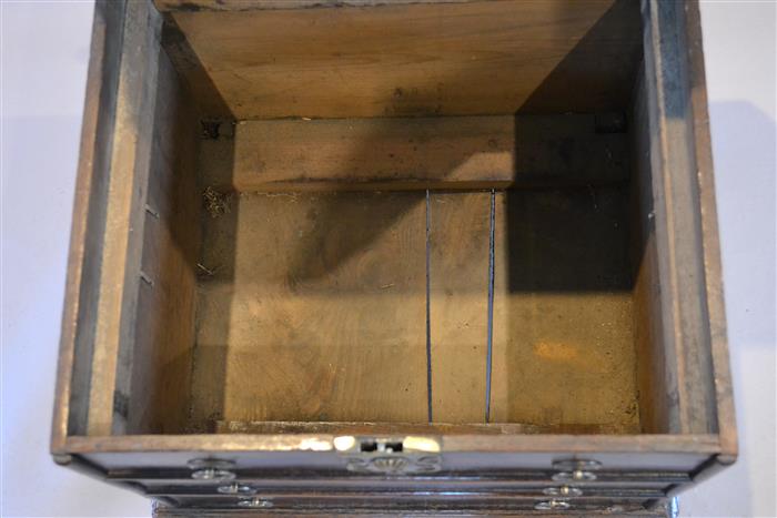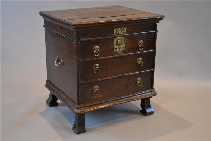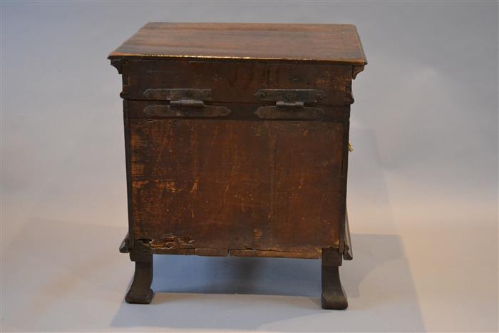 AN EARLY 18TH CENTURY OAK BOX STOOL.