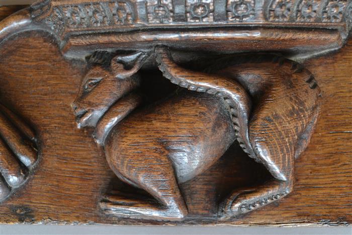 AN IMPORTANT 14TH CENTURY ENGLISH OAK MISERICORD.